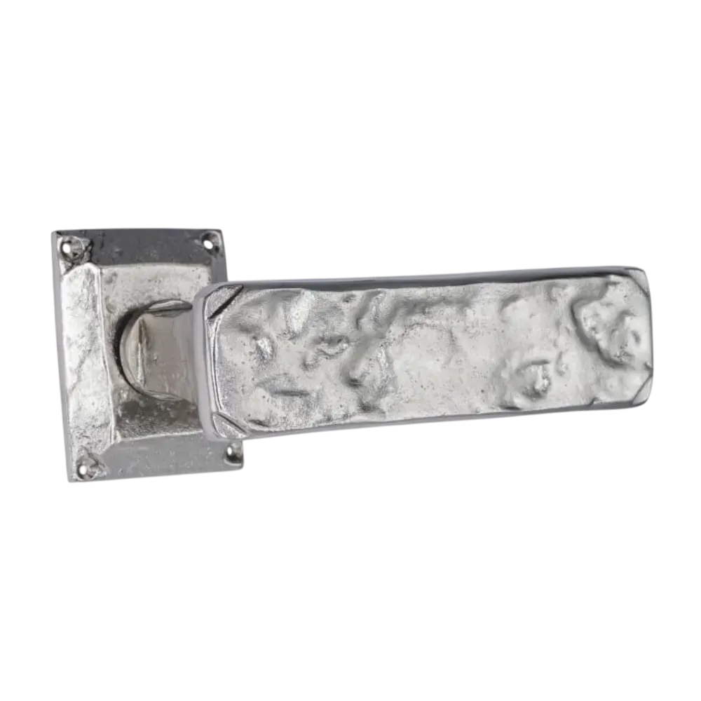 Disponible sur une rosace rectangulaire avec ou sans vis apparentes, la poignée Martelée s’intègre avec caractère dans des intérieurs classiques comme contemporains. Son design texturé, à la fois visuel et tactile, confère à chaque porte une personnalité unique et un charme intemporel.