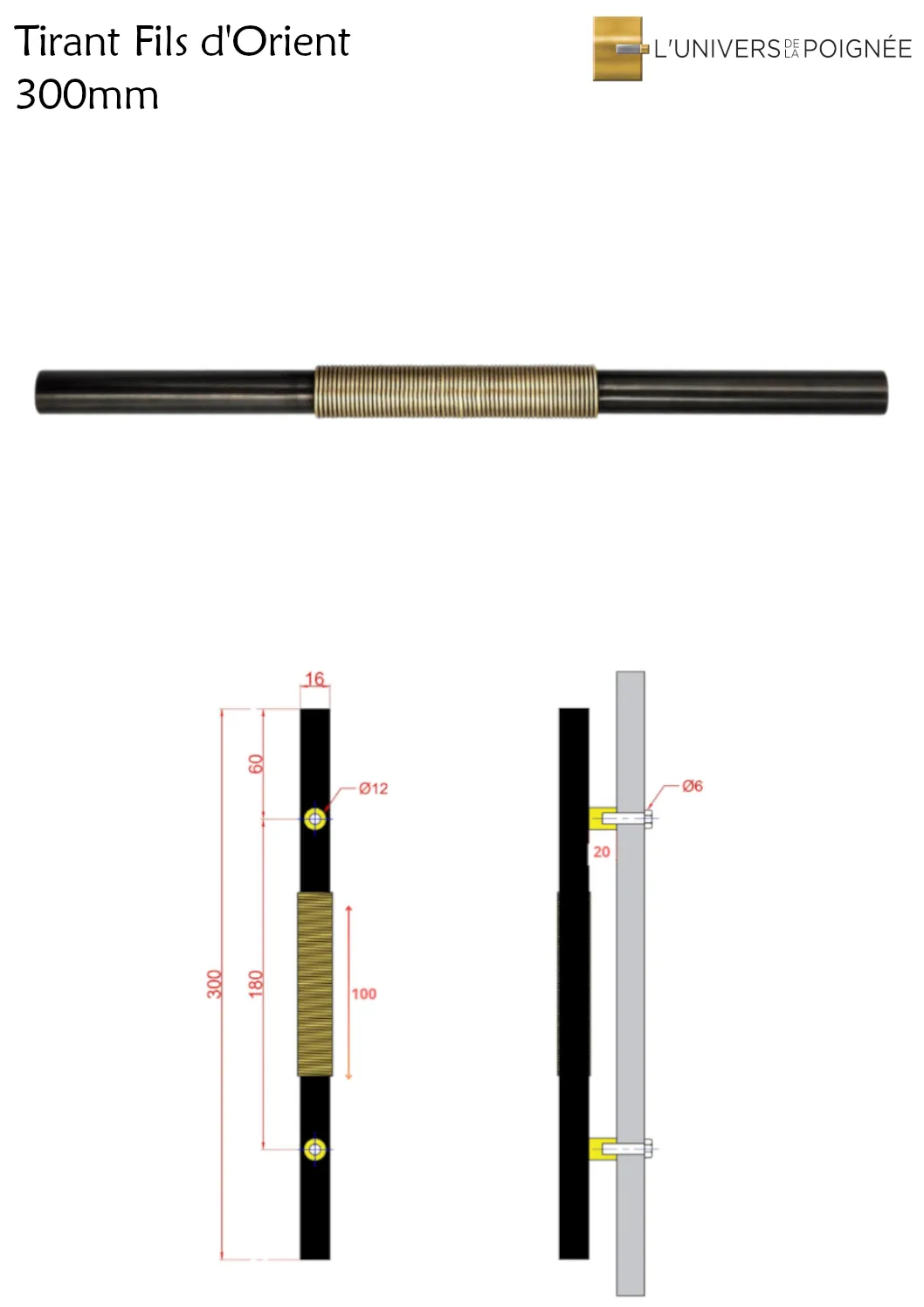 Élégance et simplicité se rencontrent dans les tirants Fils d'Orient, des poignées de meubles à la fois pratiques et décoratifs. Conçus en laiton massif, ces tirants se déclinent en trois tailles (300, 150 et 80 mm), offrant une solution adaptée à tous vos meubles, qu'il s'agisse de grands buffets ou de petits tiroirs.