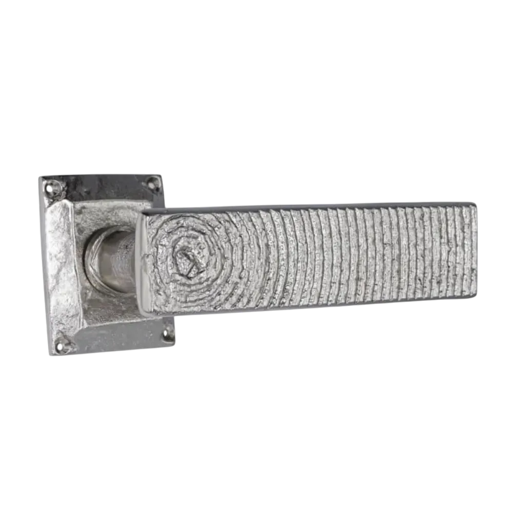 Disponible sur une rosace rectangulaire avec ou sans vis apparentes, la poignée Hypnose s’adapte aussi bien aux intérieurs classiques qu’aux espaces contemporains. Son motif fluide et organique capte la lumière et révèle des nuances subtiles, conférant à chaque porte une aura singulière.