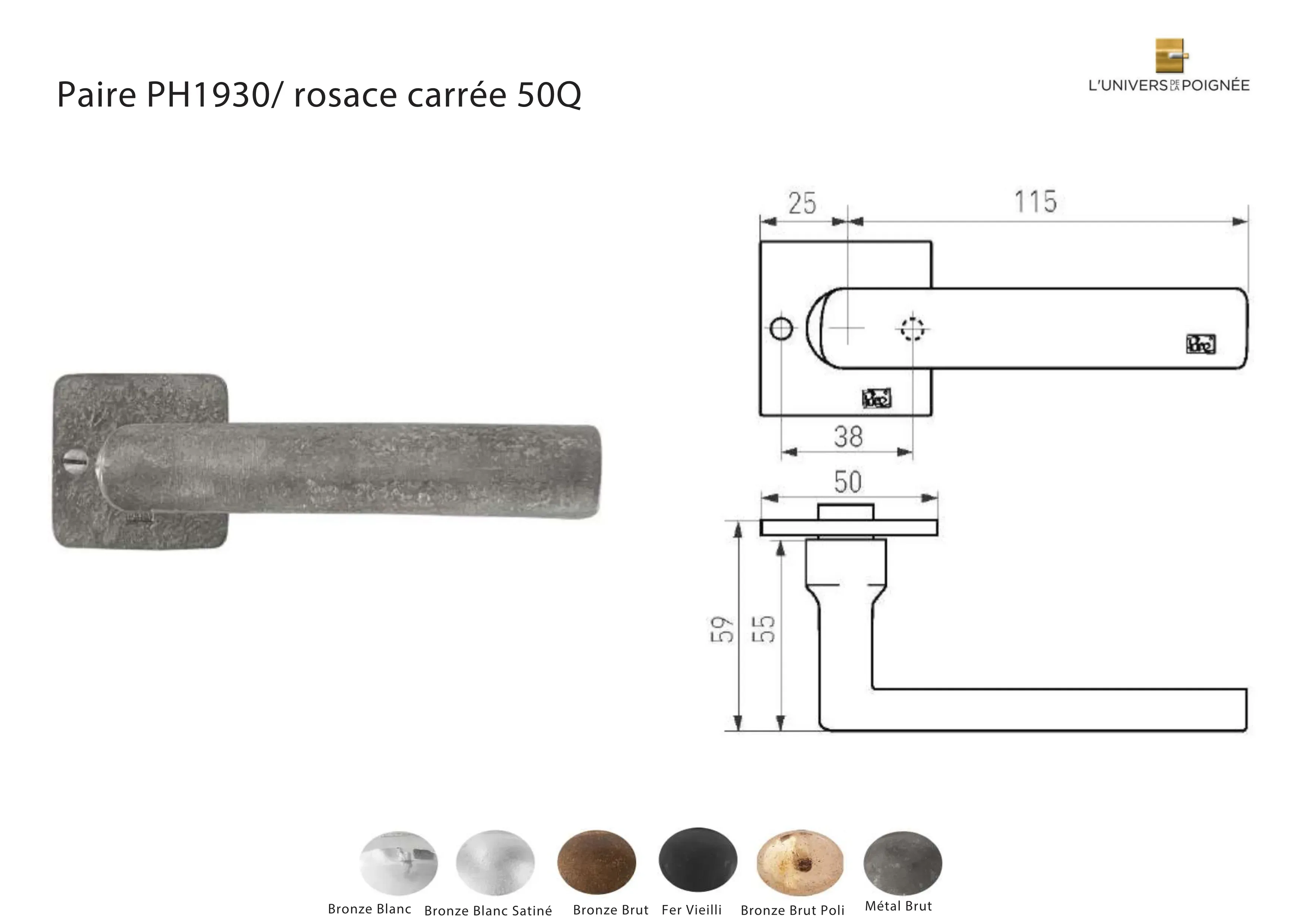 Poignée de porte PH1930 rosace carrée