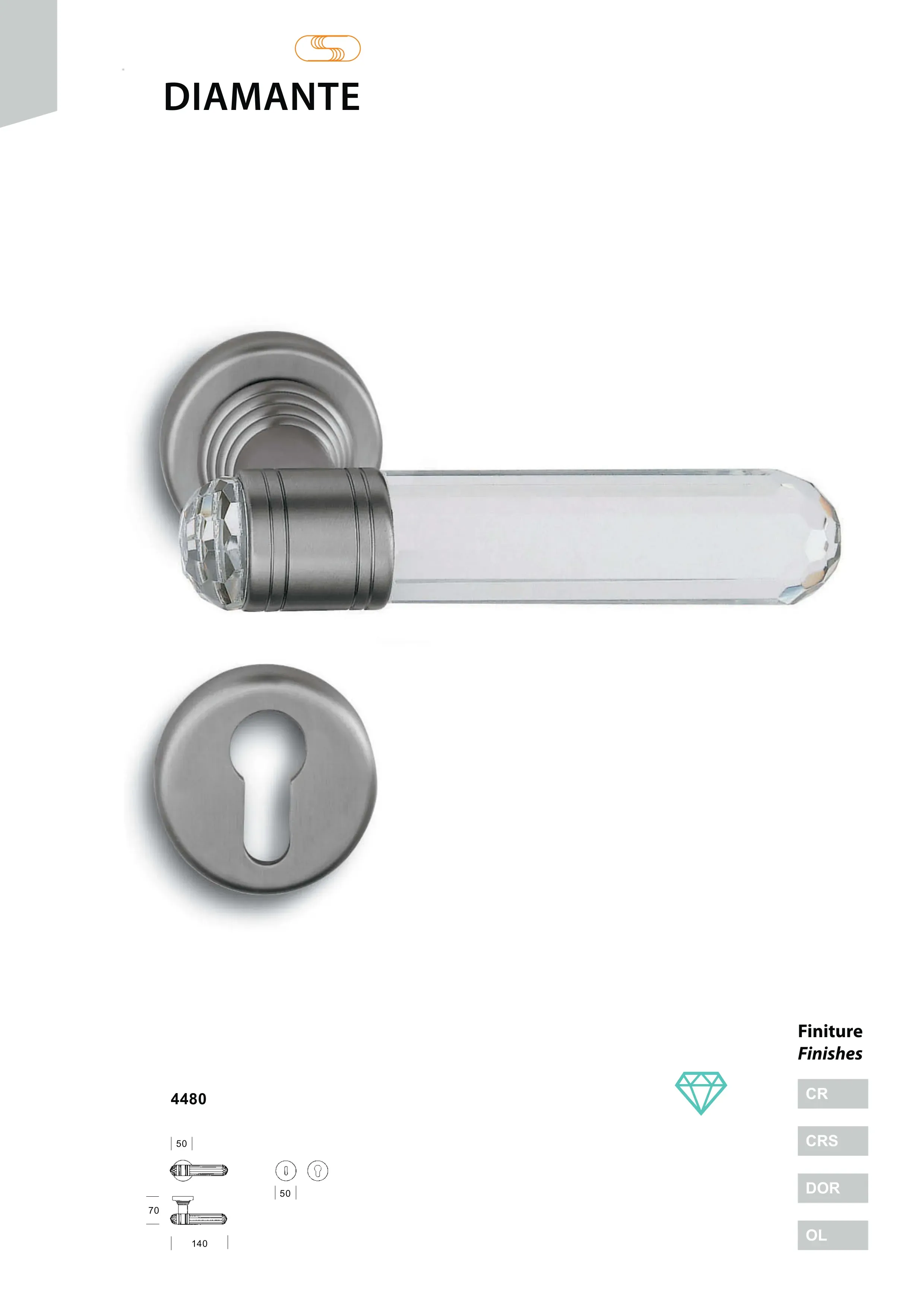 Disponible sur rosace ou sur plaque, la poignée Diamante se décline en une gamme complète de fonctions pour répondre à différents besoins d’aménagement : boutons de porte, modèles encastrés pour portes coulissantes, boutons de meuble, poignées de fenêtre ou encore bâtons de tirage. Cette diversité permet une cohérence visuelle sur l’ensemble des éléments d’un projet d’intérieur.
